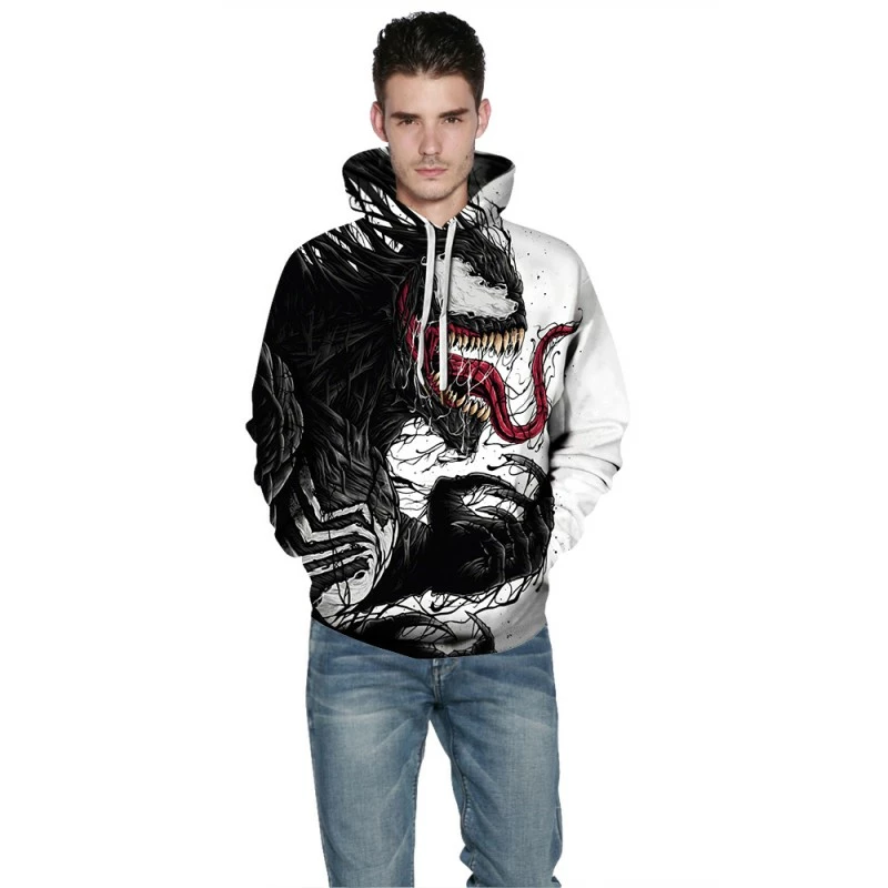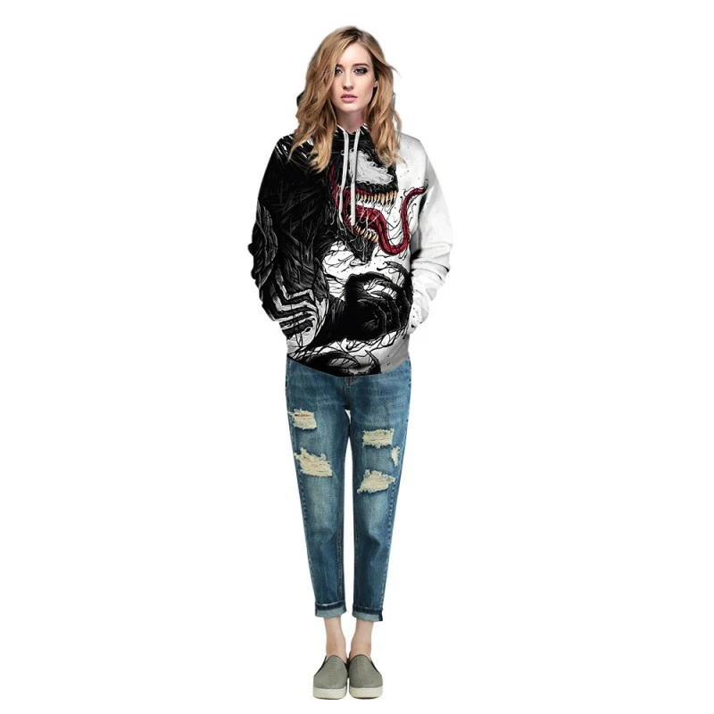 Etaya 3D Print Pattern Venom Long Sleeve Hoodies