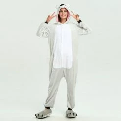 The Koala is Australia’s national treasure and a rare and precious primitive arboreal in Australia. Koalas typically inhabit open eucalypt woodlands, and the leaves of these trees make up most of their diet. The Black Koala Kigurumi fabric is a soft and comfortable flannel, high quality craftsmanship, and it is very warm to wear. The sleeves are black on both sides with pockets for warm hands, and the zipper for the hips is convenient for life.