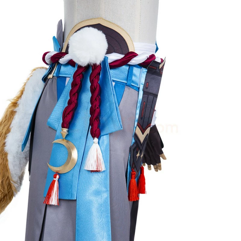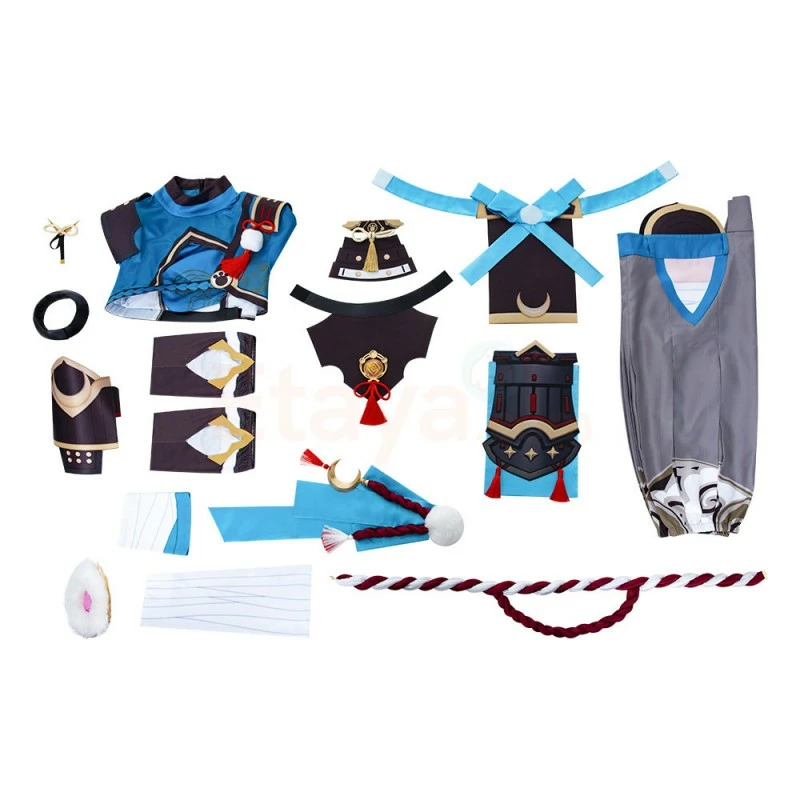 Full Set Including : Top, Pants, Waist Tie, Waist Seal, Waist Rope, Waist Ornament, Socks, Gloves, Collar Armor, Eye of God, Hand Guard, Arm Guard, Shoulder Armor, Bracelets, Tail, Ears, Hair Ornament