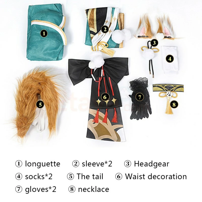 Full Set Including : Longuette, Sleeve, Headgear, Socks, The tail, Waist Decoratian, Gloves, Necklace