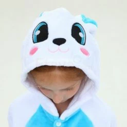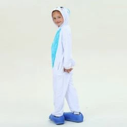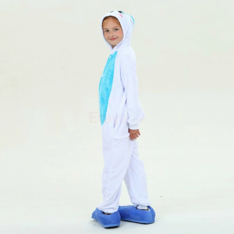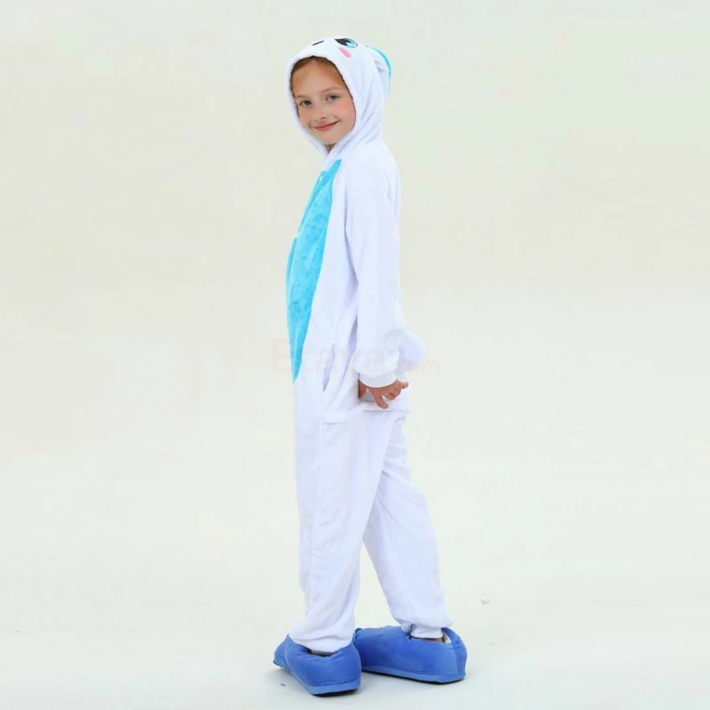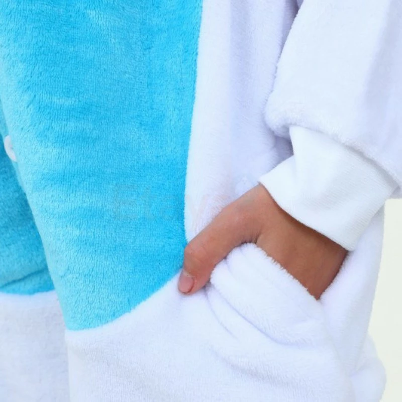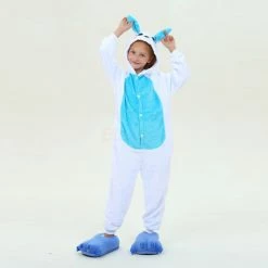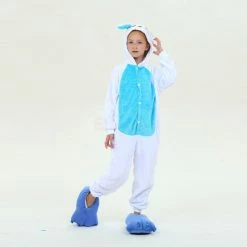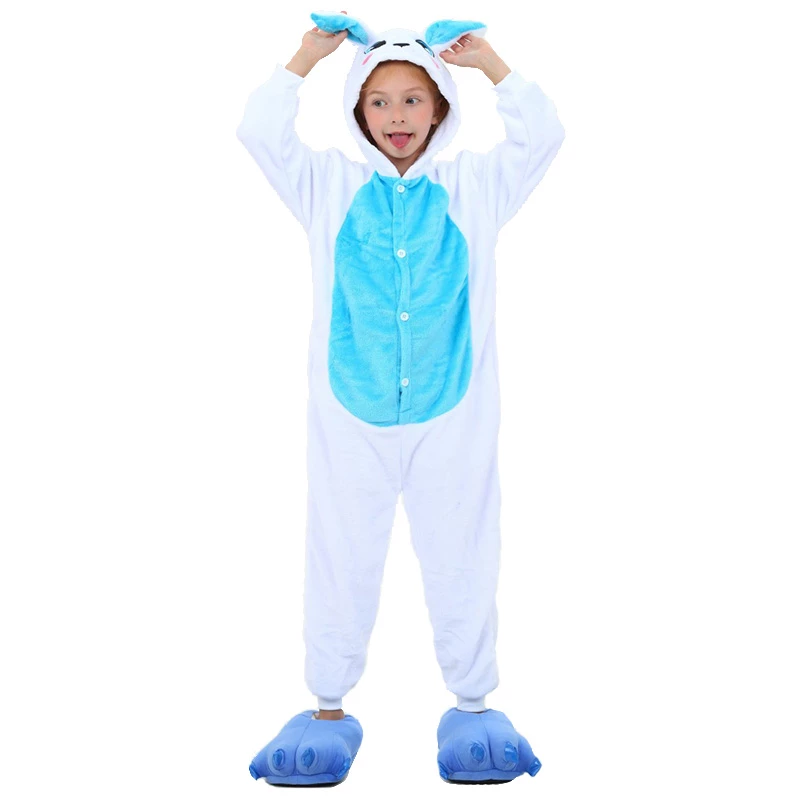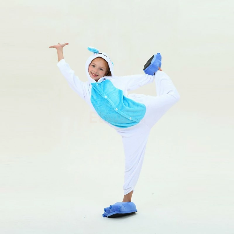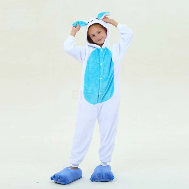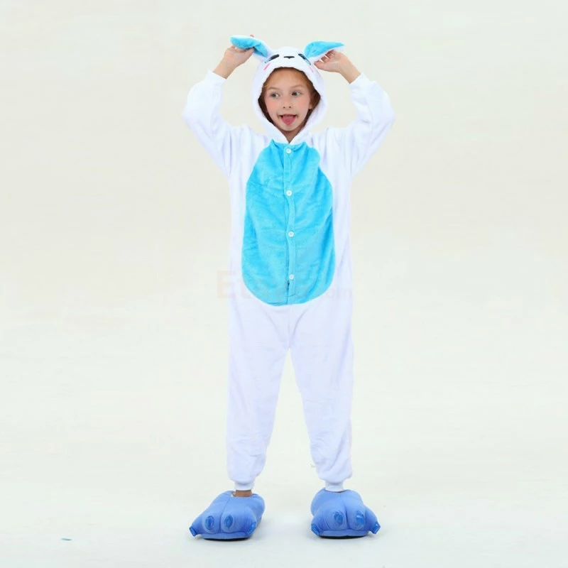 Rabbits have tubular long ears (ears longer than the ear width), clustered short tails, and stronger hind legs that are much longer than the forelimbs. Because Rabbit is cute, it is more lively and loved by people, especially children. The Kids Blue Rabbit Kigurumi is crafted from 100% Flannel and Fleece fabrics. The eyes and ears are cute and lively, and the blue shoes will work better.