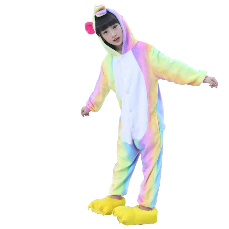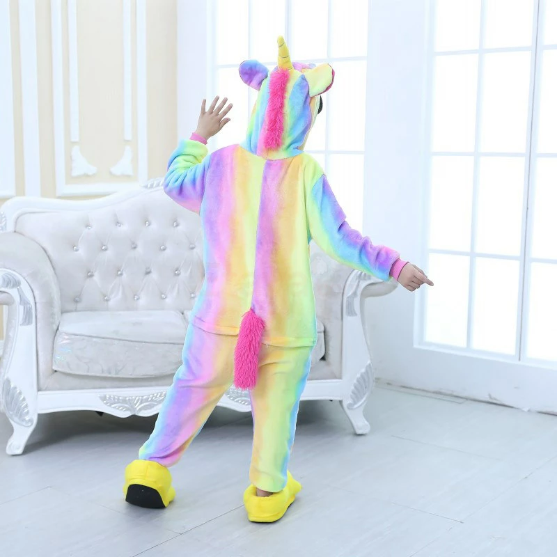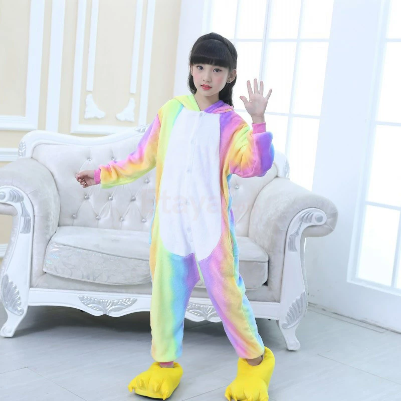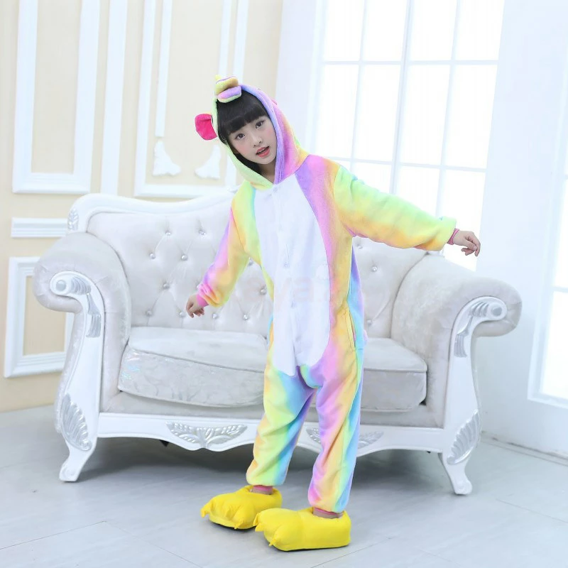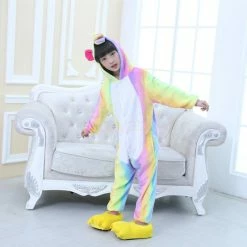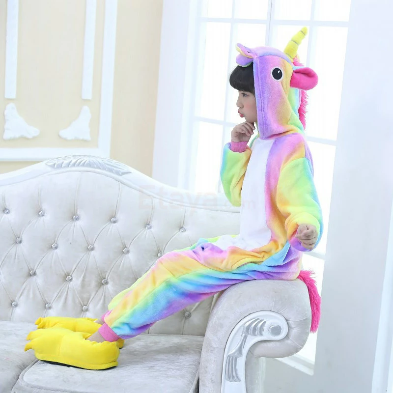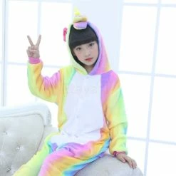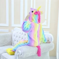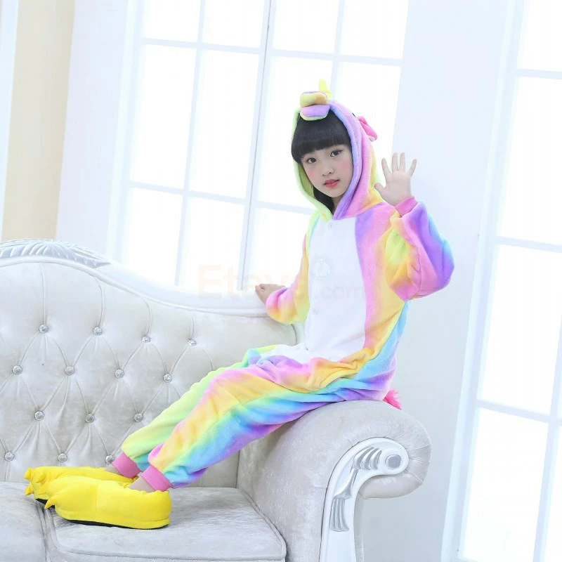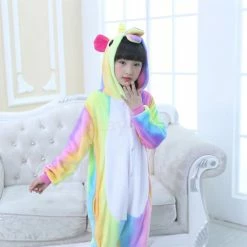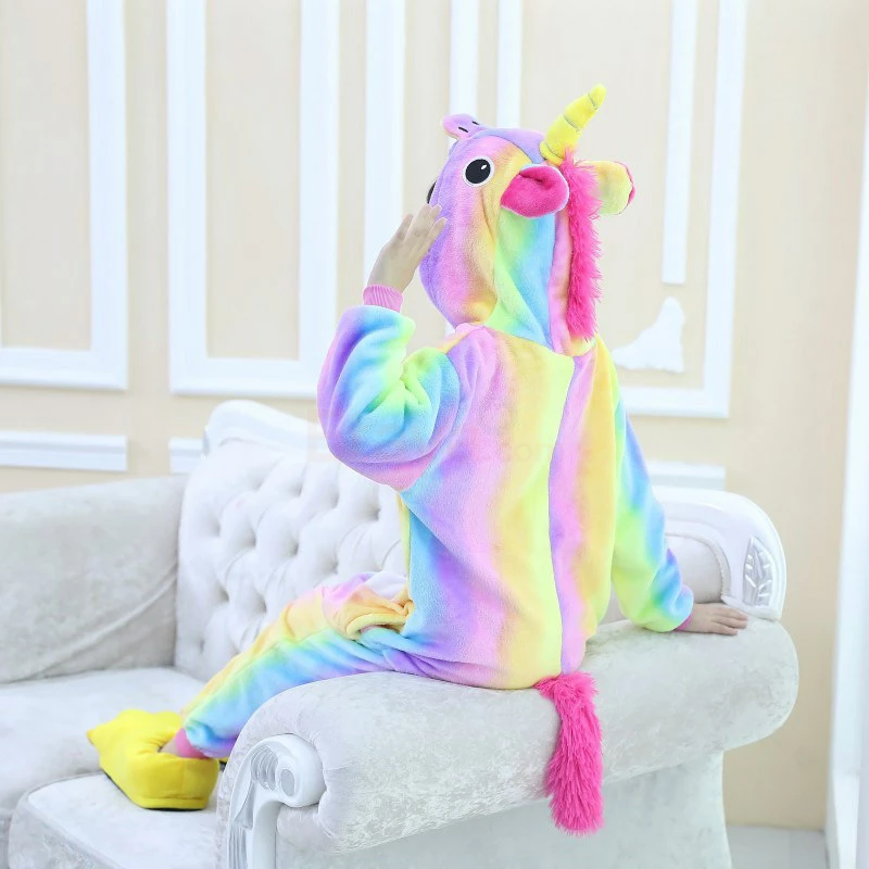 The unicorn is shaped like a white horse with a spiral angle in front of the forehead. The Kids Colorful Unicorn Kigurumi likes a variety of colors to mix and match very energetic children. Unicorn’s cartoon shape is very popular. The high-grade 100% Flannel and Fleece, high level of craftsmanship makes you buy it. Intimate pockets and zips are also very convenient.