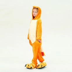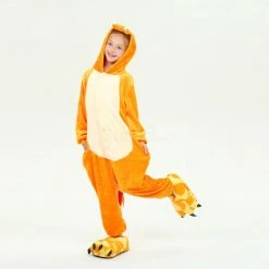 A dragon is a large, serpent-like legendary creature that appears in the folklore of many cultures around the world. Dragons in western cultures since the High Middle Ages have often depicted as winged, horned, four-legged, and capable of breathing fire Dragons in eastern cultures are usually depicted as wingless, four-legged, serpentine creatures with above-average intelligence. The Kids Fire Dragon Kigurumi has a yellow background, the head and tail have been carefully designed, and the intimate side pockets of the hips are zippered. Design is a very recommended piece of Kigurumi.