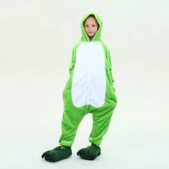 The frog has always appeared in people’s lives as a friendly and lovely image, so it has always been very popular and loved. The Frog Kigurumi is patterned with cartoon-designed frogs in soft, comfortable flannel and intimate zips and pockets for every child. Quality work, 100% Flannel and Fleece, buy it quickly.