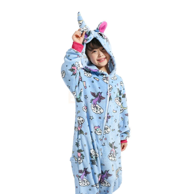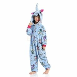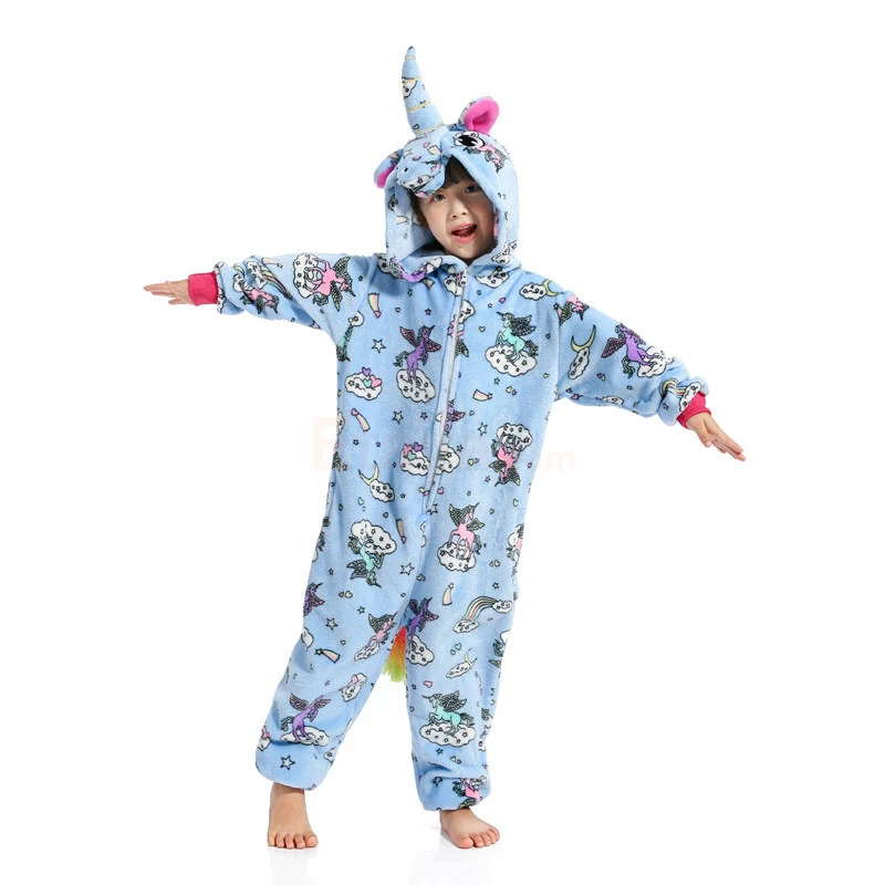 The unicorn is shaped like a white horse with a pair of wings and a spiral angle in front of the forehead, representing noble, proud and pure. The unicorn has been loved by the public since its appearance. The Kids Zipper Unicorn Kigurumi has a long zipper on the chest with a unique horn on the head and a beautiful figure on the body. 100% Flannel and Fleece fabrics have been carefully crafted with high quality, so feel free to buy.