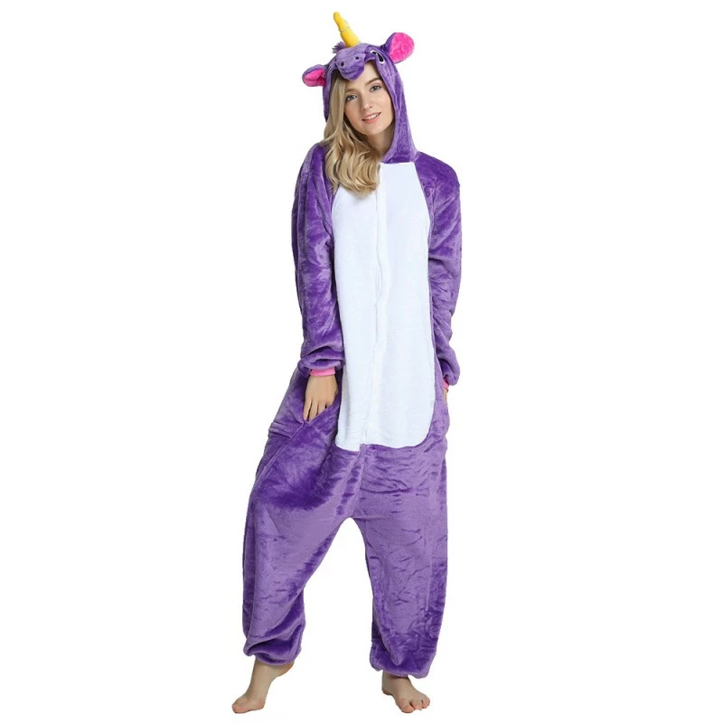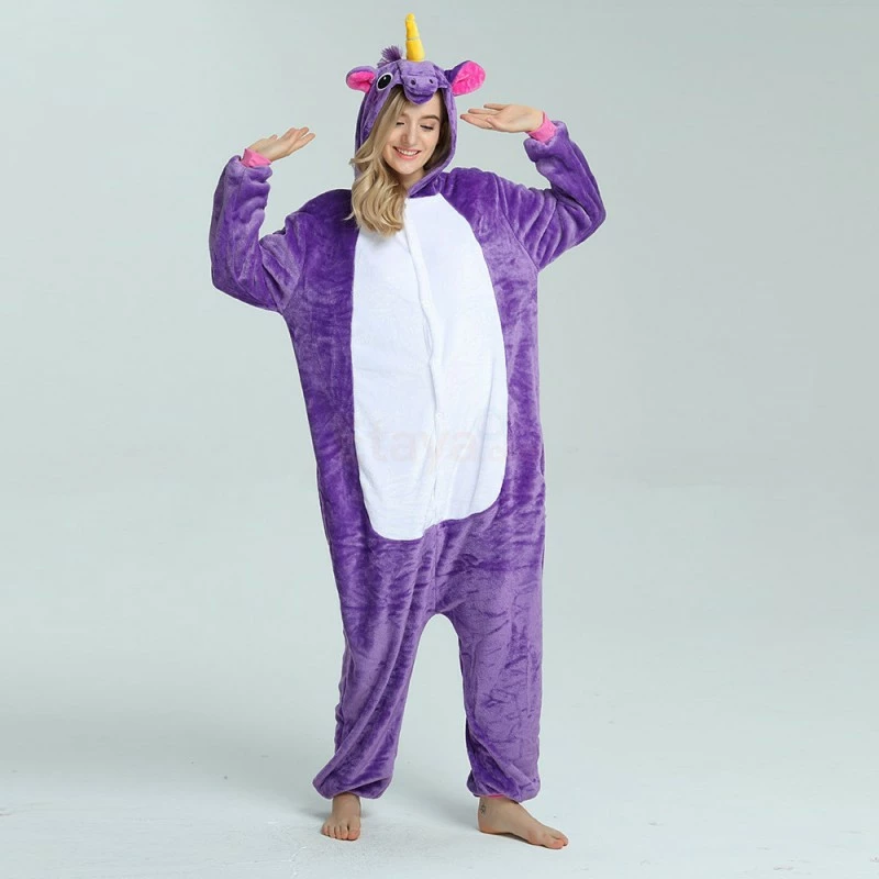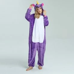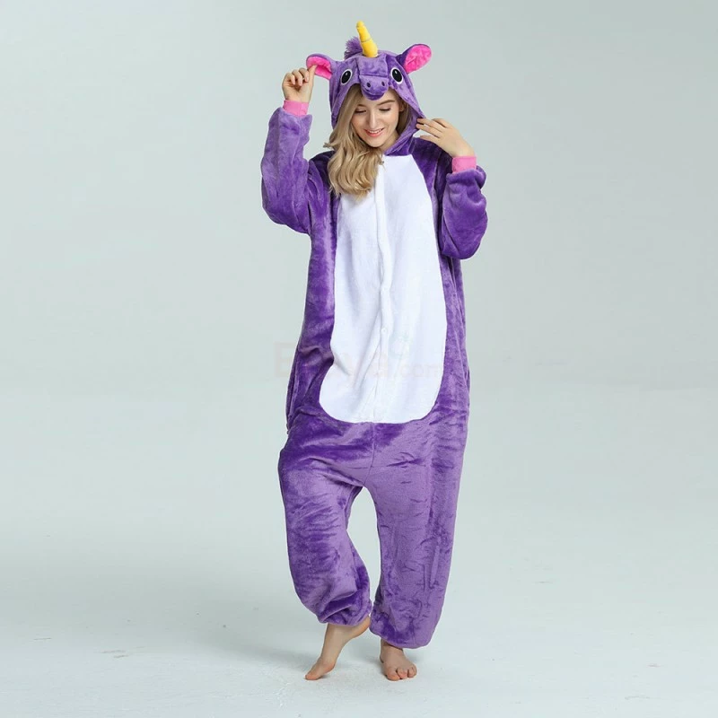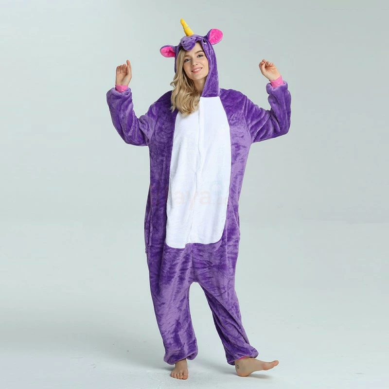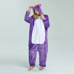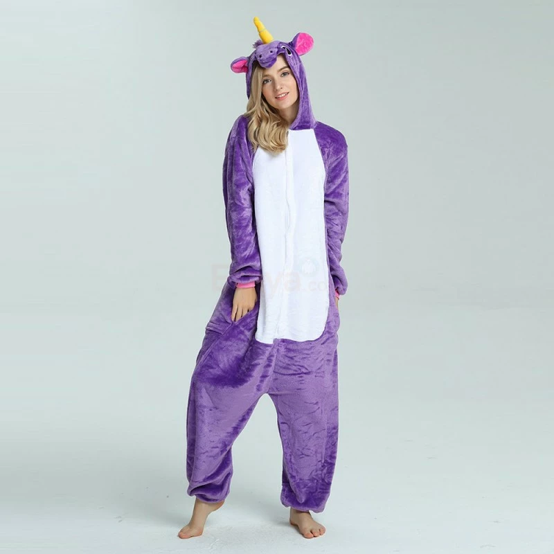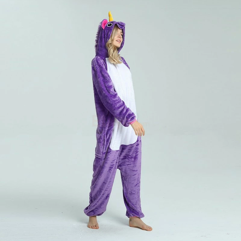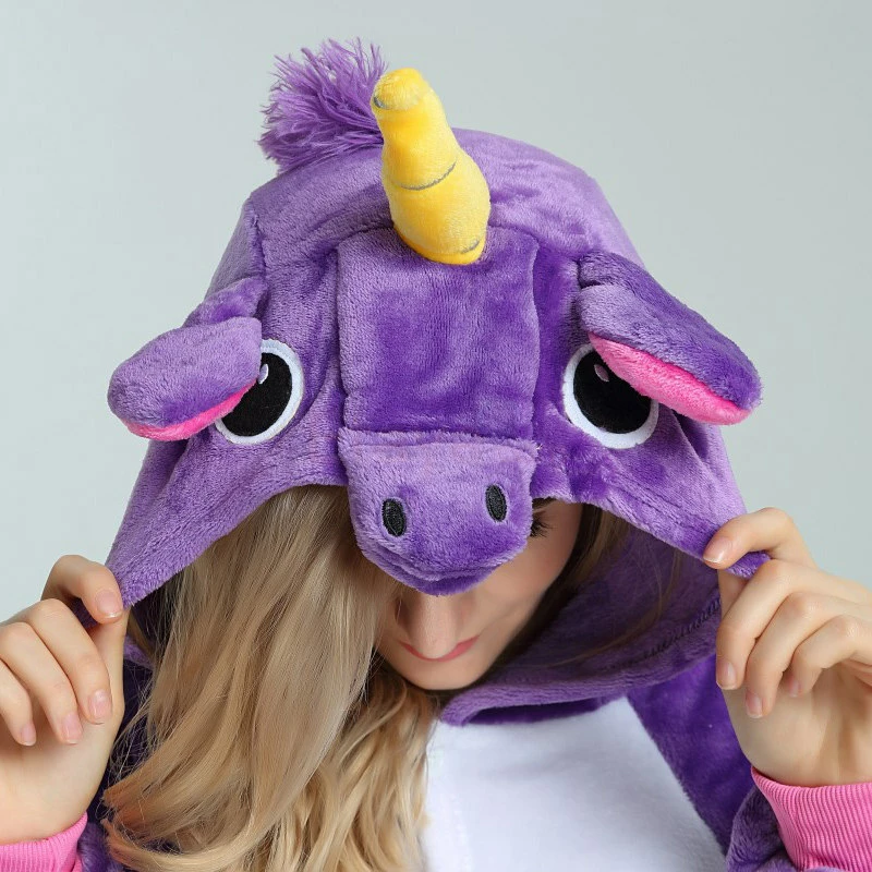 The unicorn is shaped like a white horse with a spiral angle in front of it, representing noble, proud and pure. Whether your child has a vivid imagination or a stellar fashion sense, our Purple Unicorn Kigurumi is the best choose! The Purple Flying Horse Kigurumi is carefully designed and coloured with a flannel texture, a yellow pointed corner and pink ears on the head, and a pocket and zipper design.