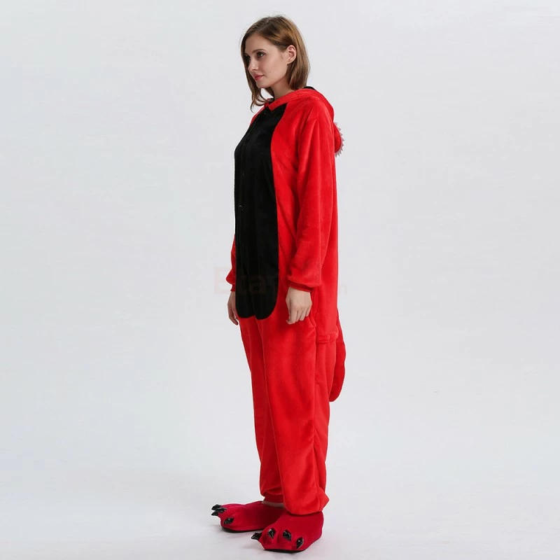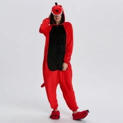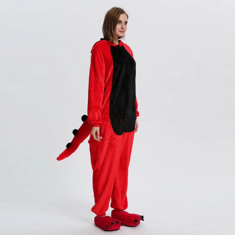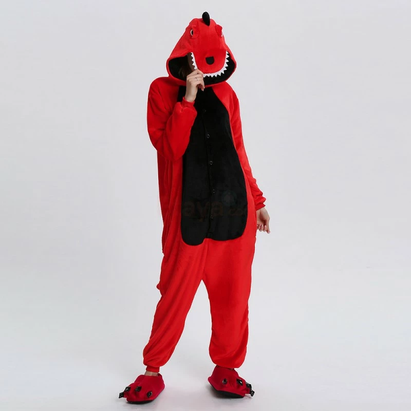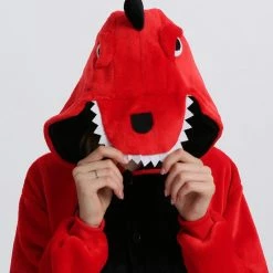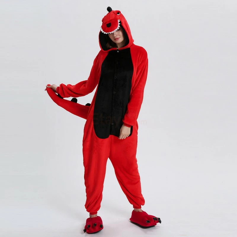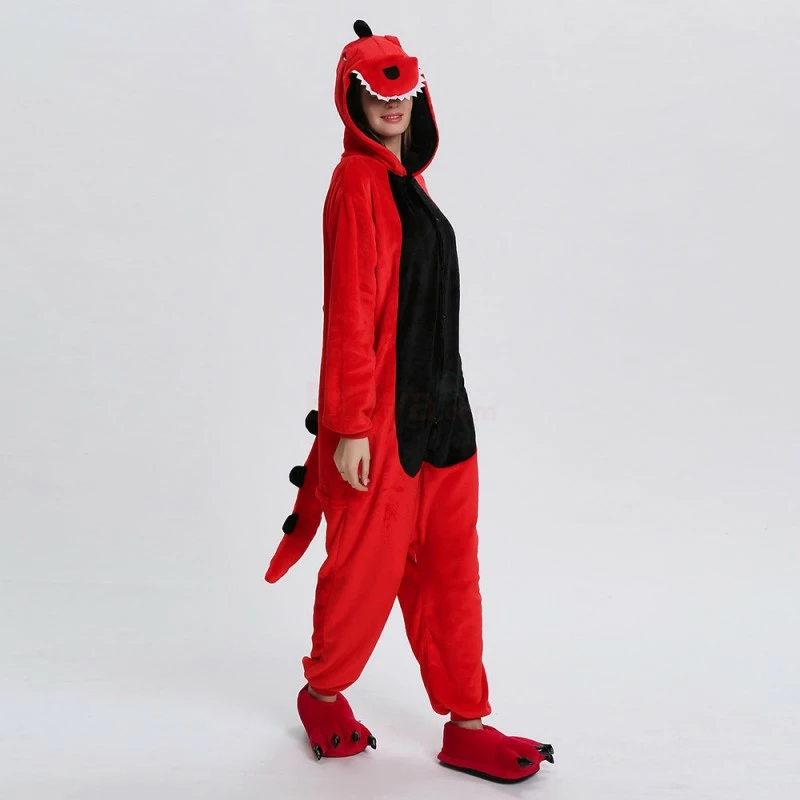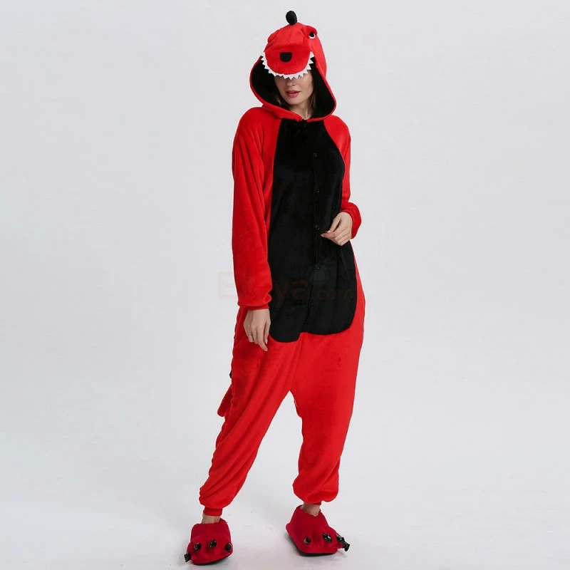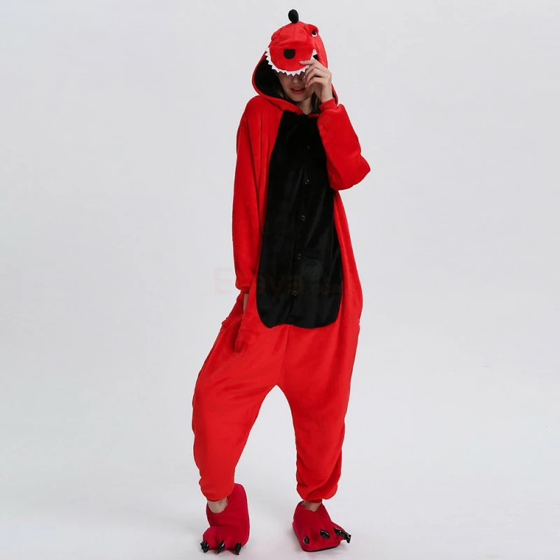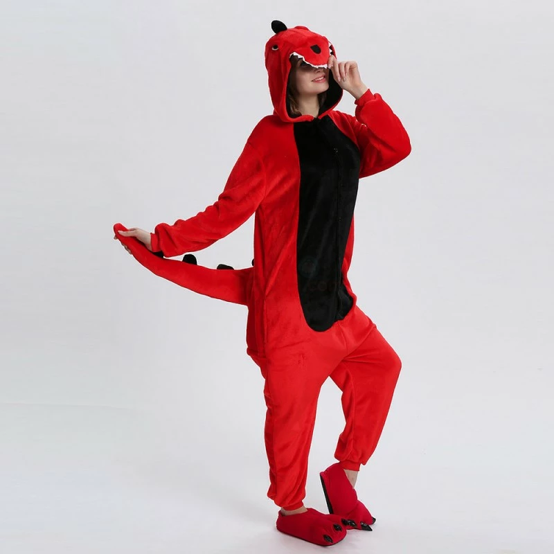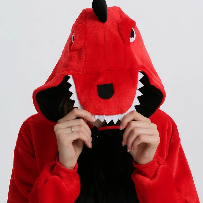 Dinosaurs are a collective term for reptiles. The powerful limbs, long tail and large body are the portrayal of most dinosaurs. There are many types of dinosaurs, and the difference in body shape and habits is also large. Dinosaurs may be extinct, 100% flannel and fleece adorable animal onesie proves comfort is alive and well! The Red Dinosaur Kigurumi The most obvious is the combination of Red and Black, with a cartoon shape and a thorn on the back for a closer look.