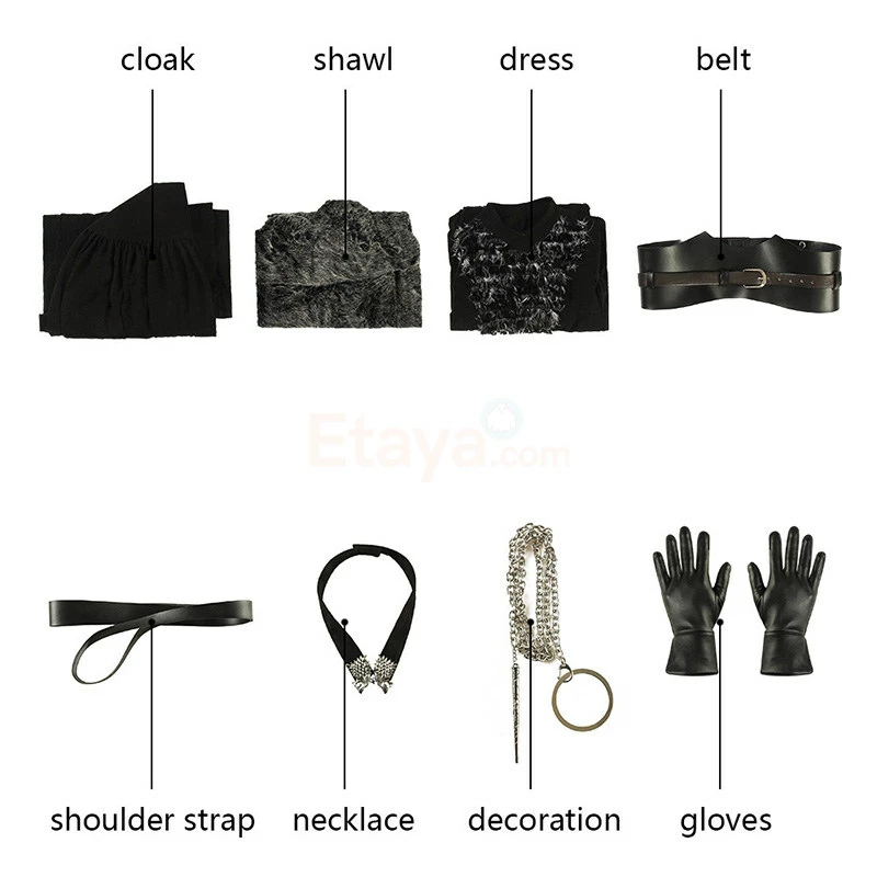 Full Set Including : Cloak, Shawl, Dress, Shoulder Strap, Necklace, Decoration, Gloves