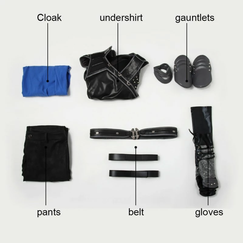 Full Set Including : Cloak, Vest, Belt, Pants, Leggings, Gloves, Tied Hands, Wrist Guards