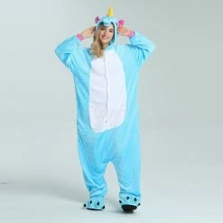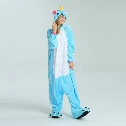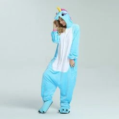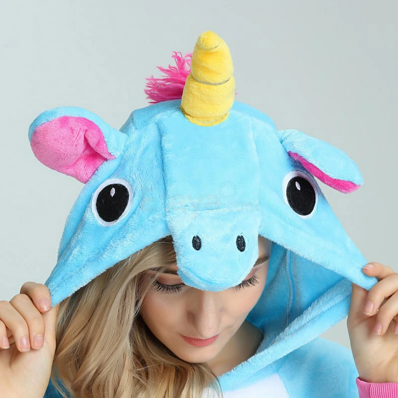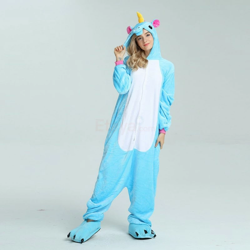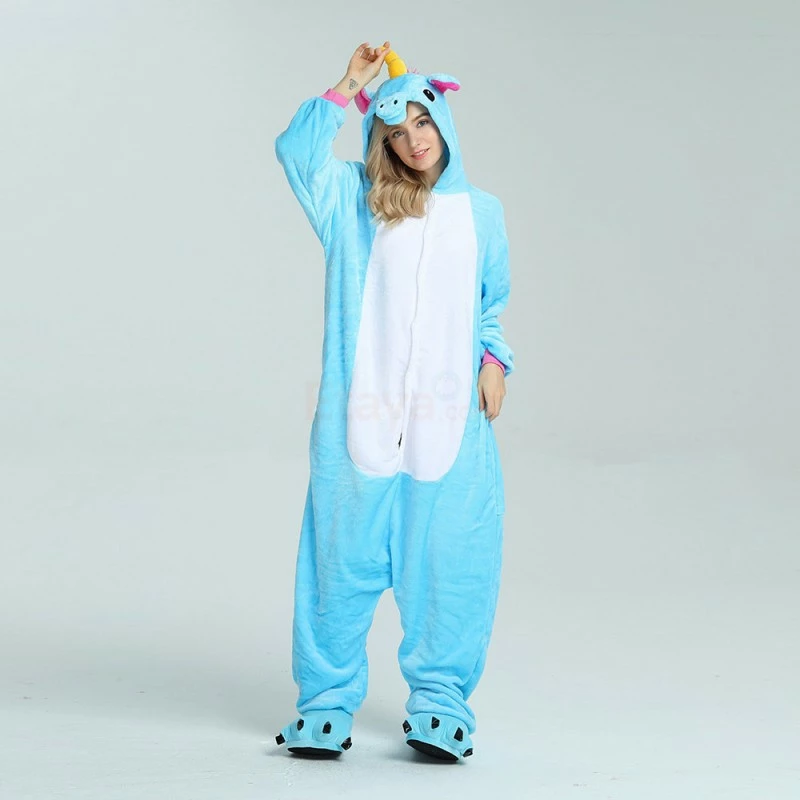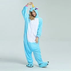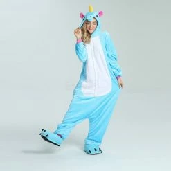 Unicorns are pretty much the most amazing creatures to ever exist, it can run on the ground, swim in the water, and fly in the sky. The Unicorn Blue Kigurumi has a blue background as a whole, and the pink ears correspond to the tail. The magical yellow horn will help you accomplish wildest dreams. The high-grade flannel fabric is more comfortable and warm to wear.