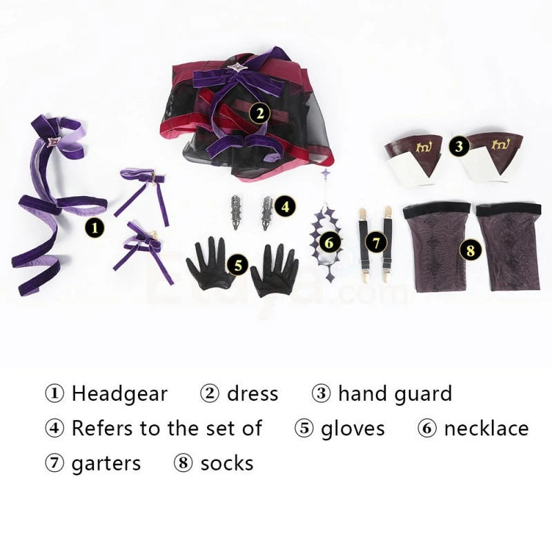 Full Set Including : Headgear, Dress, Hand Guard, Refers to the Set of, Gloves, Necklace, Garters, Socks